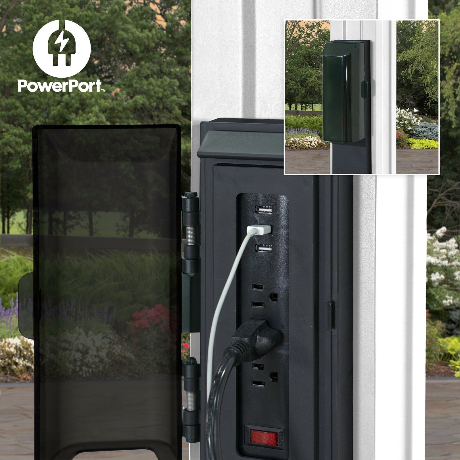 - POWERED UP: Exclusive removable PowerPort™ features 3 electrical outlets and 3 USB ports that is transferable to any post on the structure. PowerPort™ can be used for charging devices, lights and more. PowerPort™ requires a power source to be functional (not included)