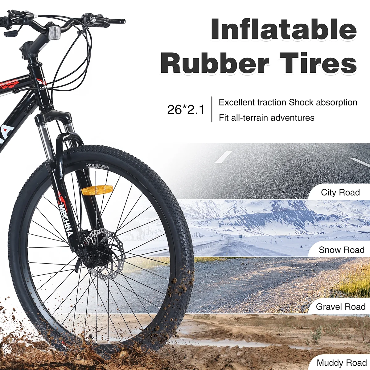 Ideal Size for Adult- This 26″ bike is designed for adult or 5’4″- 6’2″ of rider height, perfect for riding on city road, muddy road, snow road, gravel road etc.