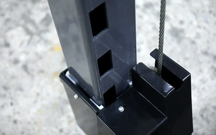 - Exterior steel sleeves with UHMV slides surround each column to ensure positive contact and containment.