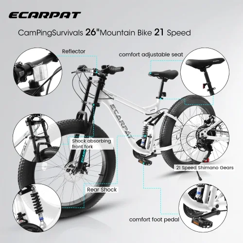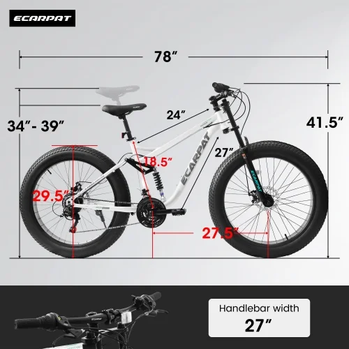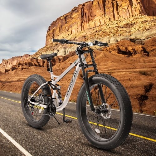 A26309 26 inch Mountain Bike,Full-Suspension 21 Speeds Drivetrain with Disc-Brake MTB Bicycle, 26*4″ Fat tire Bike for Men