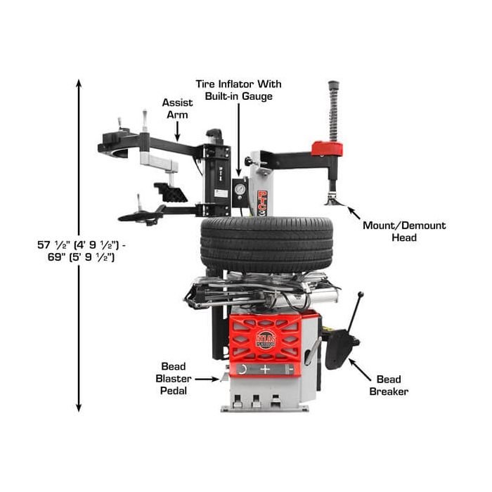 The new Atlas Platinum PTC300 represents the evolution of the most familiar tire changer configuration found in high volume tire shops around the world. The PTC300 is an Italian engineered Swing-Arm Tire Changer that comes standard with a Left-Hand Bead Pressing and Bead Lifting Assist Arm to make changing the most challenging tires a breeze.