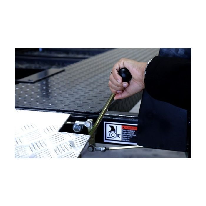 Four, 3/4″ thick safety locks engage simultaneously as the lift is raised. At all times, locks are securely trapped by the cross tube sleeves, so they don’t become dislodged or disengaged. A backup slack-cable lock ensures instant lock engagement in the unlikely event that a main cable fails.