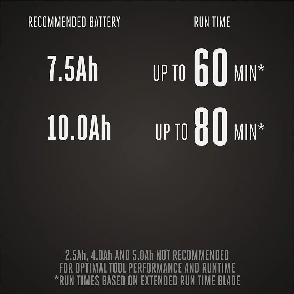 - Up to 60 minutes of runtime on a single charge with the recommended 56V 7.5Ah ARC Lithium™ battery
