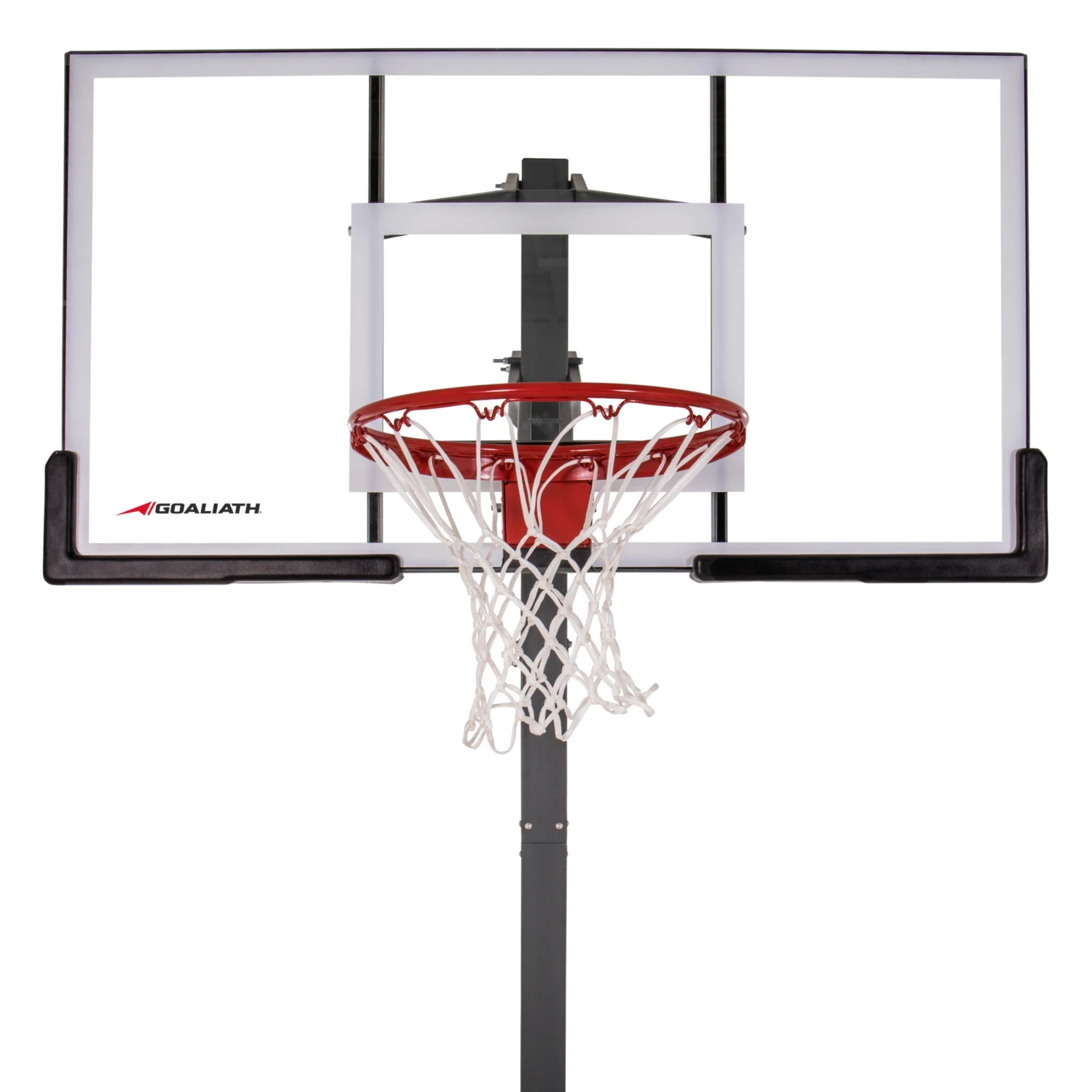 Light up your home court with the Goaliath® 60” Ignite In-Ground Basketball Hoop. This in-ground hoop features a large tempered glass backboard, two-piece pole, and pre-assembled pro-style flex rim for a strong and durable basketball system. Featuring new lower board arms and pole lock technology, the Ignite hoop offers increased strength and stability during aggressive play. With corrosion protection the Ignite hoop holds up to the weather and the intense pick-up game. Goaliath basketball hoops are made by the same company that manufactures Goalrilla basketball hoops/systems. Get years of fun with the Goaliath® 60” Ignite In-Ground Basketball Hoop.