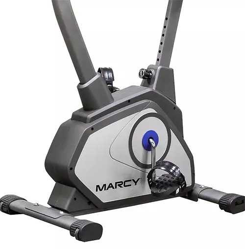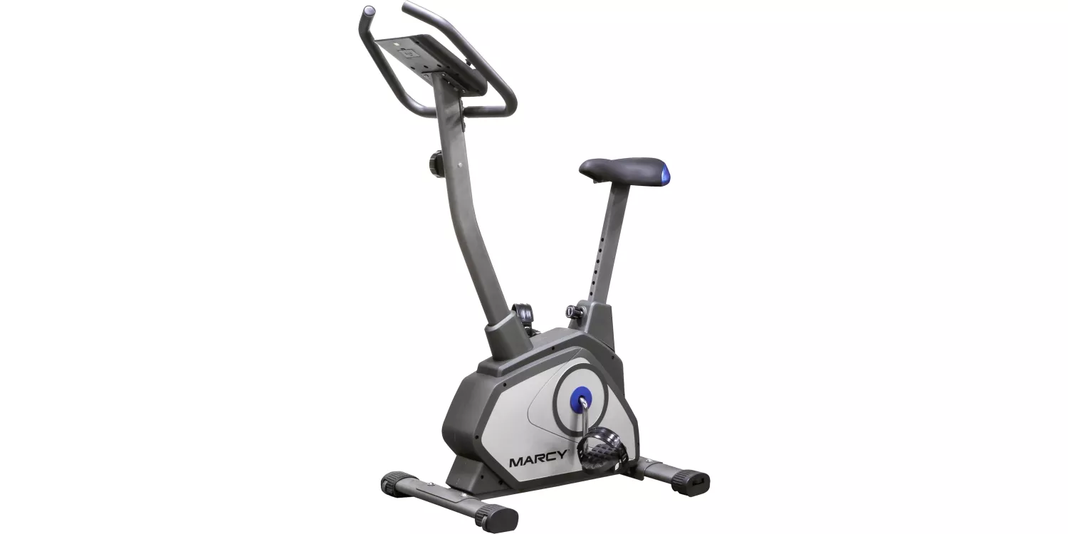 Pedal your way to a more fit body with the Marcy® Upright Magnetic Bike. Featuring eight preset manual magnetic resistance levels, this fitness bike delivers a smooth performance to help you reach your fitness goals. Weighted and counterbalanced pedals feature adjustable straps, while the padded seat adjusts to accommodate users of varying height. Keep track of your fitness with the LCD monitor that tracks speed, distance, time and more.