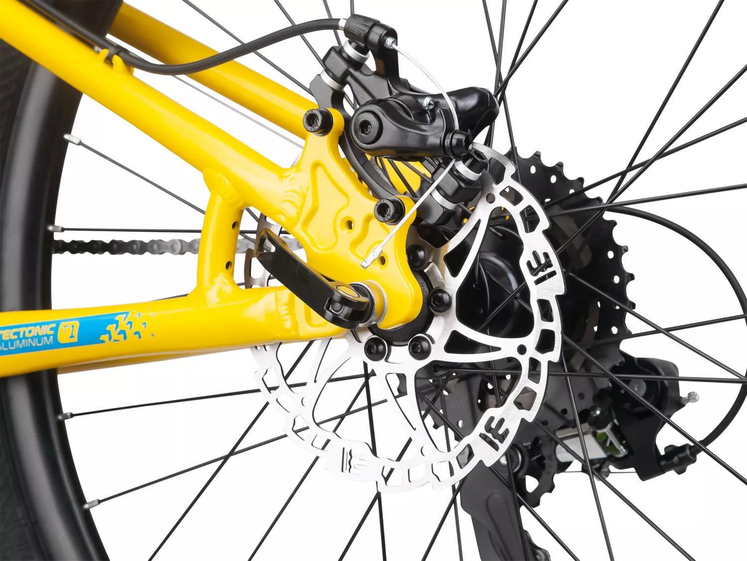 - Tectonic T1 aluminum MTB frame with updated trail geometry and internal cable routing offers lightweight durability
