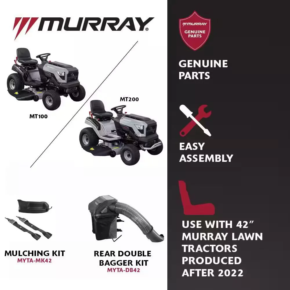 Affordable and efficient, Murray products have been getting the job done for over 90-years. Exclusively powered by the world’s leading small engines from Briggs and Stratton, Murray is a perfect fit for today’s consumers who are seeking reliable, high-value products to simplify their busy lifestyles. The Murray MT100 42 in. Riding Lawn Tractor powered by a 13.5 HP 500 cc single cylinder Briggs and Stratton Engine delivers powerful performance and a superior cut up to 2 acres on 1-tank of fuel. The adjustable seat has a 13 in. mid-back padded seat for added comfort. Offering a 6-speed manual transmission, 13-cutting heights and mow-in-reverse option will allow you to always find the best cut for your grass type. This riding lawn mower also features a cup holder, headlights and a rear built-in hitch for added convenience. Murray. Get it done. Go have fun.