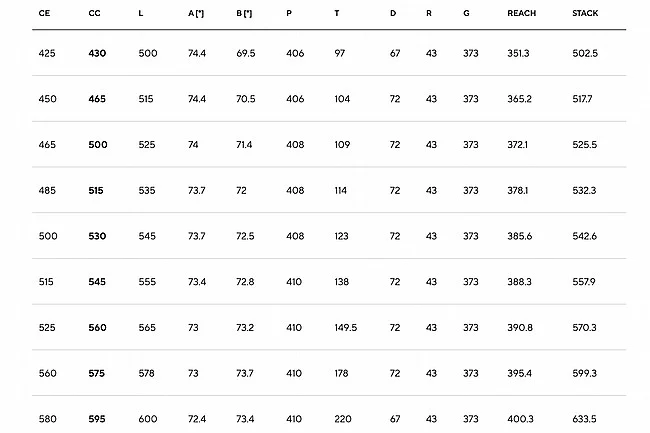- Handlebar: MOST Jaguar XA Aero TiCR; 430-515: 420mm; 530-545: 440mm; 560-595: 460mm