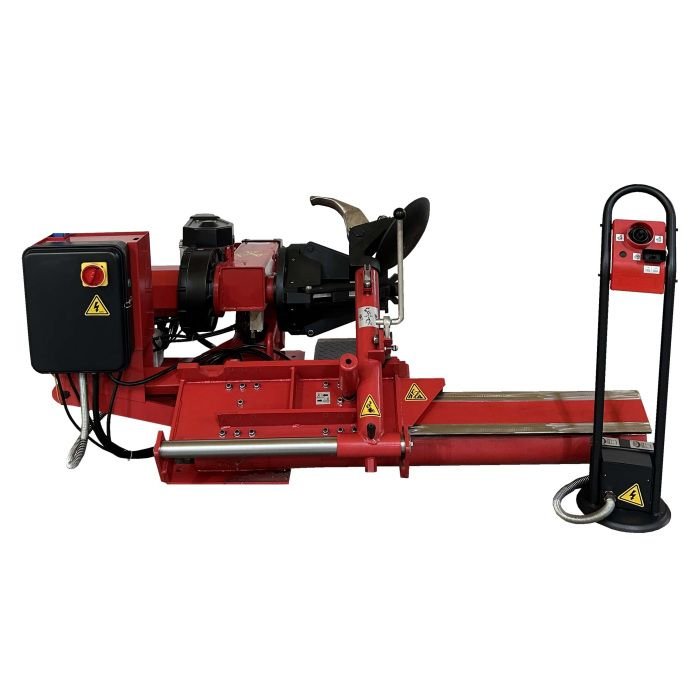 TC-770-T Heavy-Duty Truck Tire Changer is a great piece of equipment for a truck shop or farm. The TC-770T is capable of handling tires with tubeless rims or lock rings. Ideal for agricultural equipment, trucks, tractors and earth movers. This tire changer features a four jaw rotating chuck with 2 speeds and a control unit on a portable stand. The rapid change mount / demount arm will assist with your time efficiency.