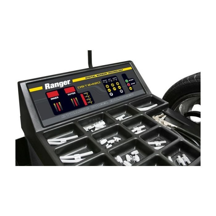 A free kit of wheel weights is included with DST2420 and DST64 wheel balancers. Each unit’s starter kit contains one bulk roll of 100 silver adhesive steel tape weights, one bulk roll of 100 black adhesive steel tape weights and one starter box of mixed clip-on steel weights. It’s our way of getting you off on the right foot. Additional Ranger wheel weights are available for purchase at any time.