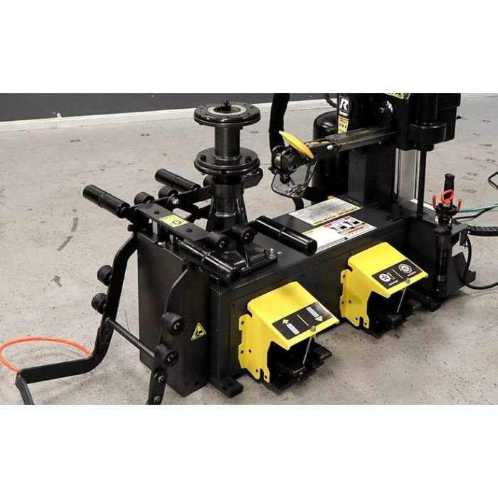 The Ranger RV1 Wheel Guardian features the latest in touchless wheelservice technology and provides your shop with the most advanced tire changing capabilities on the planet. You no longer need them those tire irons and levers, so put them away! The RV1 is a workhorse designed to work on all wheels types without damaging the rim or requiring clumsy toolbars, bead locks or tire levers.Why risk the chance of damaging expensive wheels when you can go touchless? With the Ranger RV1 Wheel Guardian, tire irons and levers become a thing of the past. The unique reversible tool head effortlessly mounts and dismounts the most stubborn tires without ever making contact with the wheel. Ergonomic joystick control features with a precision actuator, allowing you to inch the bead hook or lifting tip into position for gentle handling of delicate alloy wheels.