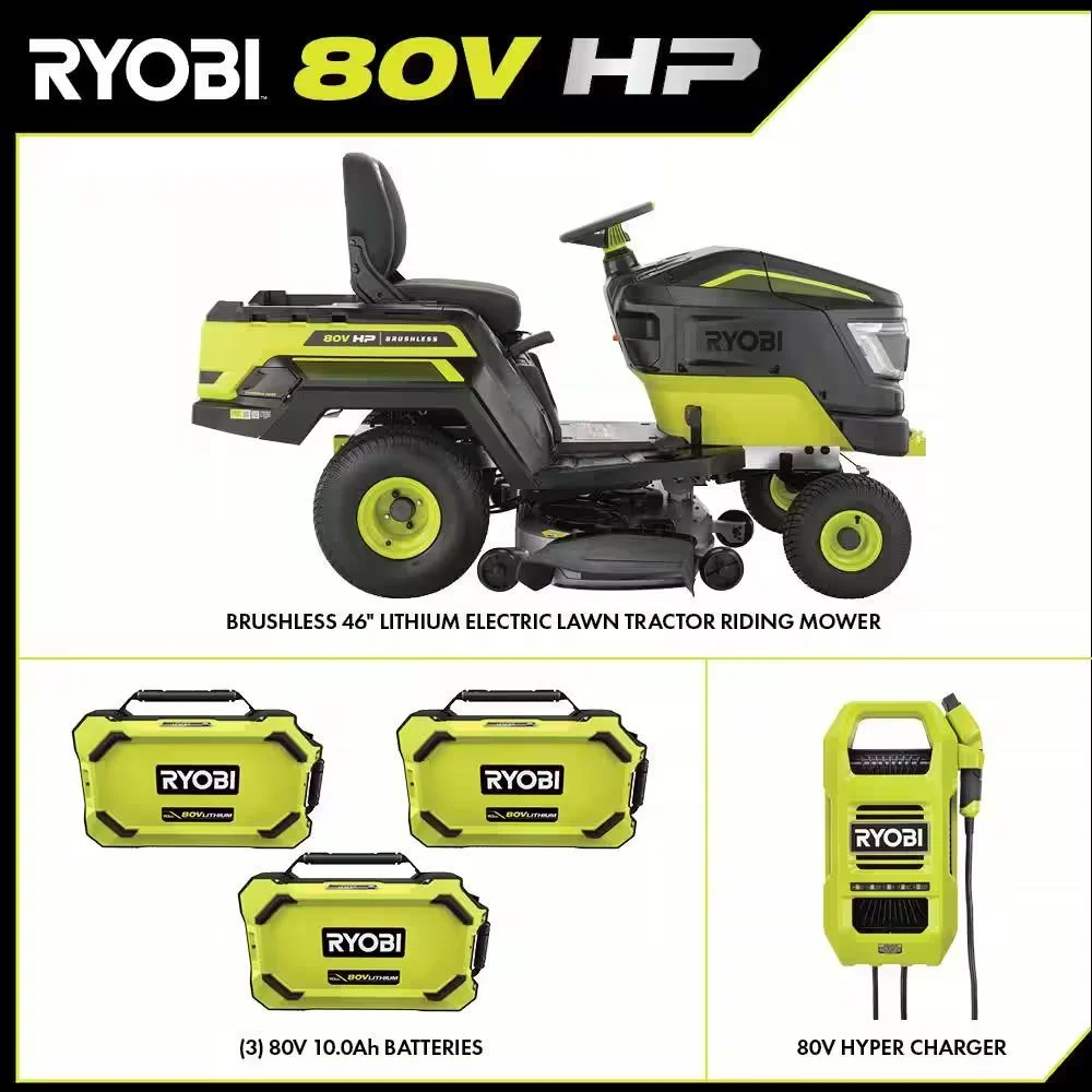 RYOBI 80V HP Brushless 46 in. Battery Electric Cordless Riding Lawn Tractor with (3) 80V 10Ah Batteries and Charger