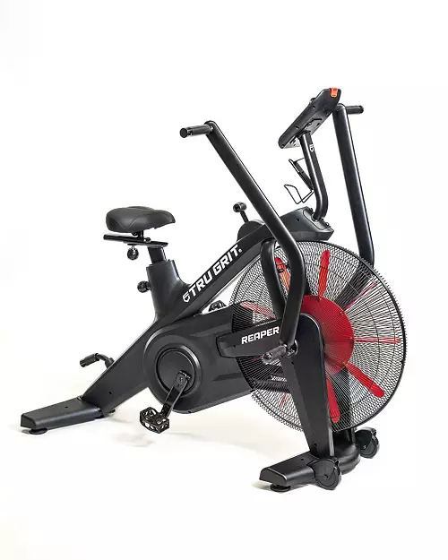 Product InformationThe all new Tru Grit Reaper Bike was developed with a purpose to set a new level of innovation to the fan bike & cardio category. Made from industrial-grade steel and styled with sleek commercial-grade plastic fairings. The Reaper Bike is the first in class fan bike featuring 8 levels of magnetic resistance to challenge your cardio workouts to a level never seen before. Connected with a smooth belt driven design and oversized fan, The Reaper Bike is quieter than other bikes in the market. Track, challenge and gamify your workout by connecting to your Reaper Bike to your favorite fitness apps with Bluetooth / ANT capabilities.