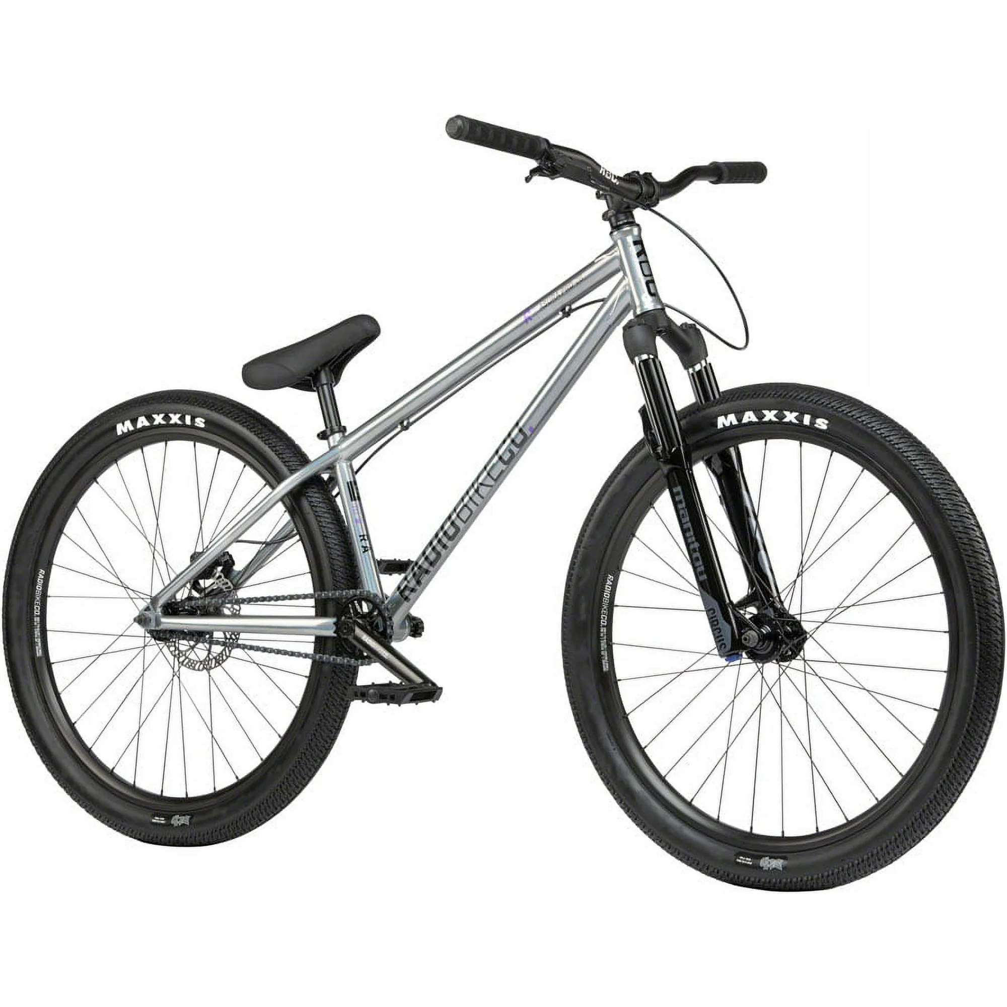 About this item Radio Asura Pro 26″ Dirt Jump Bike 22.7″ TT Spectral Silver Constructed with a full Chromoly aftermarket dirt jump frame for enhanced durability and performance Equipped with a Manitou Circus Comp fork for superior suspension and control Features a Tektro hydraulic disc brake for reliable stopping power in various conditions Includes fully…