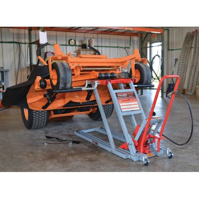 Safely perform the required maintenance of your garden tractor or zero turn mower. Tasks such as changing oil, deck repair, cleaning debris, and blade work are now made easy. Features Innovative Lawn Mower Lift not only lifts your riding mower but also serves as a maintenance stand Universal design lifts ALL mowers with a 19.5″…